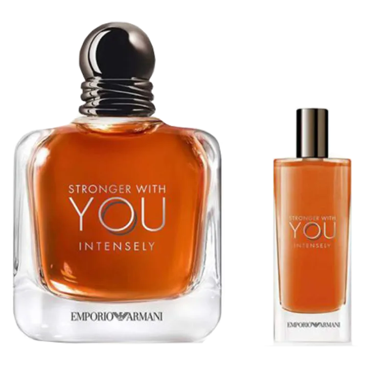 Dazzling Stronger With You Intensely Set . Oriental Fougere fragrance untuk pria trendy dari Emporio Armani hadir dalam Limited Edition berisi Stronger With You Intensely 100ml dan 15ml.